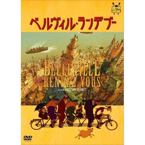 フランスのアニメーション映画「ベルヴィル・ランデブー」は2002年のシルヴァン・ショメ監督作品。自転車を巡る奇妙で奇怪な物語。自転車で疾走する爽快さやレースの駆け引きといった有りがちな要素は皆無。精緻な背景美術と極端にデ