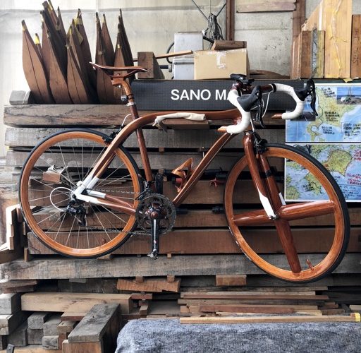 知人が言うには、職場の近くに木でできた綺麗な自転車を作っている人がいて、芸術品のような美しい佇まいだったらしい。その後、新木場の倉庫街を通りかかり、この辺りかなと思っていた矢先に、まさに煌めくような木製自転車が颯爽と走り