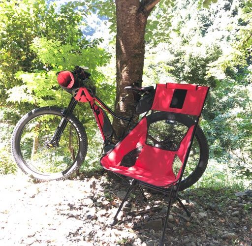 マウンテン・バイク、それも電動アシストなら、人里離れた山野に分け入り、気に入った場所で寛ぎたいと思っていた。マットやハンモックも良さそうだが、調べているうちに見つけたのが、アウトドア用の椅子。軽量なパイプ製で、組み立ても