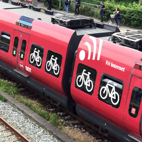 欧米では自転車をそのまま電車に載せることが一般的。一般的なので、わざわざサイクル・トレインと呼ぶことはないが、その中でもコペンハーゲンのDSB(デンマーク国鉄)のS-Togは圧巻。自転車マークが大きく描かれた車両がホーム