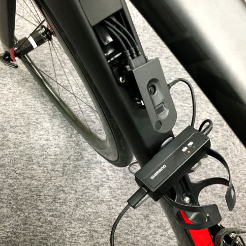 Di2のシンクロシフト化とともに、新型ワイヤレス・ユニットEW-WU111を取り付けた。これは、スマートフォンからDi2のファームウェアのアップデートや、Di2の各種設定を行うためだ。このユニットは思いのほか有用で、Di