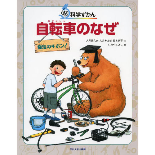 自転車とその乗車を解き明かす大判本が「自転車のなぜ」。サブタイトル「物理のキホン!」が示すように、自転車を題材とした物理学の解説だ。豊富なイラストと平易な文章、すべての漢字にはふりがな、クマ博士とともに「力のなぞ」を探る