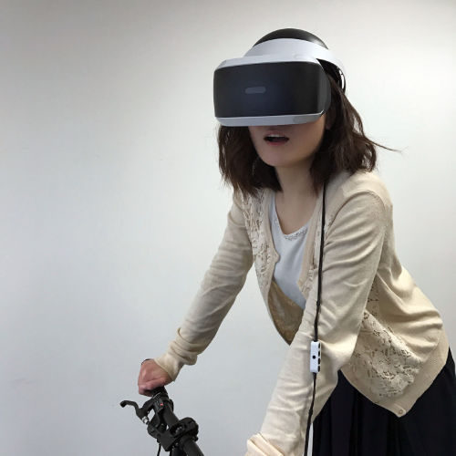 2016年夏に展示したThe Ridable Cityは、自転車を漕いで仮想の都市を探求する作品。自転車は室内に置かれており、HMD(ヘッド・マウント・ディスプレイ)を装着して、走行する主観映像を見る。この映像はヘルメッ