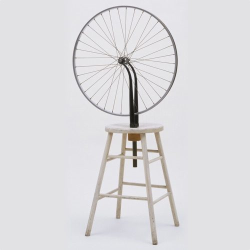 マルセル・デュシャン(Marcel Duchamp)の「自転車の車輪」(Bicycle Wheel/Roue de bicyclette, 1913)は、その名の通り、丸いスツール(腰掛け椅子)に逆さ向きに取り付けた自転