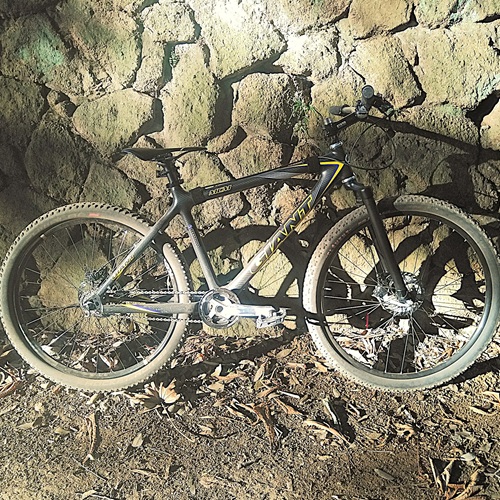 このところ、身の回りで稼働中の自転車がディングルスピード仕様ばかりになっている。その中ではディングル化のセッティングが不完全で実質シングルスピードに近い状態になっているのが、カーボンフレームのMTBだ。これに入れているカ