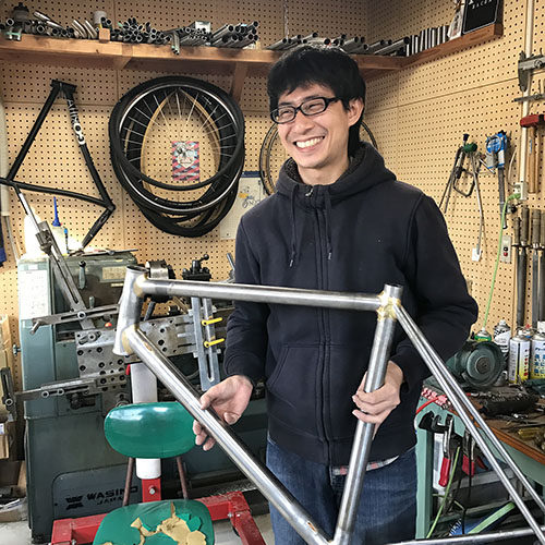 仕事内容について 赤松正行(IAMAS教授):フレームの注文をされるのは近くの人ですか? 服部晋也(Shin・服部製作所代表):今作っているのは、会ったことがない新潟の方です。いろんなところから注文が来れるようにはしてい