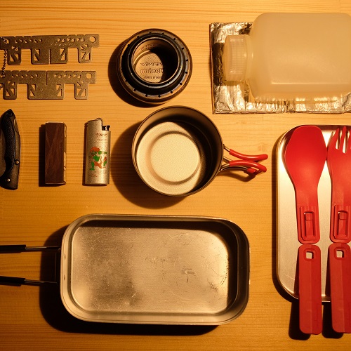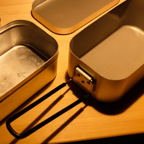 少し前に、細長い箱形のメスティン(定番のトランギア製TR-210)を活かした自転車キャンプ用メスキットを組んだ。概ね満足していたが、素材が無垢アルミのため食材がくっつきやすく(その結果として焦げやすく)、フィールドでの清