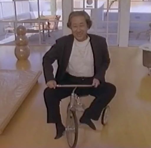 Michael Blackwoodが1990年に制作した『Arata Isozaki II: International Projects』の中で、30年前の建築家、磯崎新はどういうわけか三輪車に乗っている。2019年に